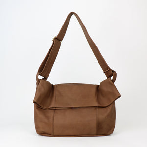 たっぷりとしたサイズ感と上質なマットレザーの質感が、シンプルな装いにも深みを与えます。