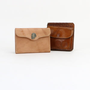BrownBrownのスタッフが2年使っていた財布です。ベージュカラーは革色の変化が一番楽しめる色です。